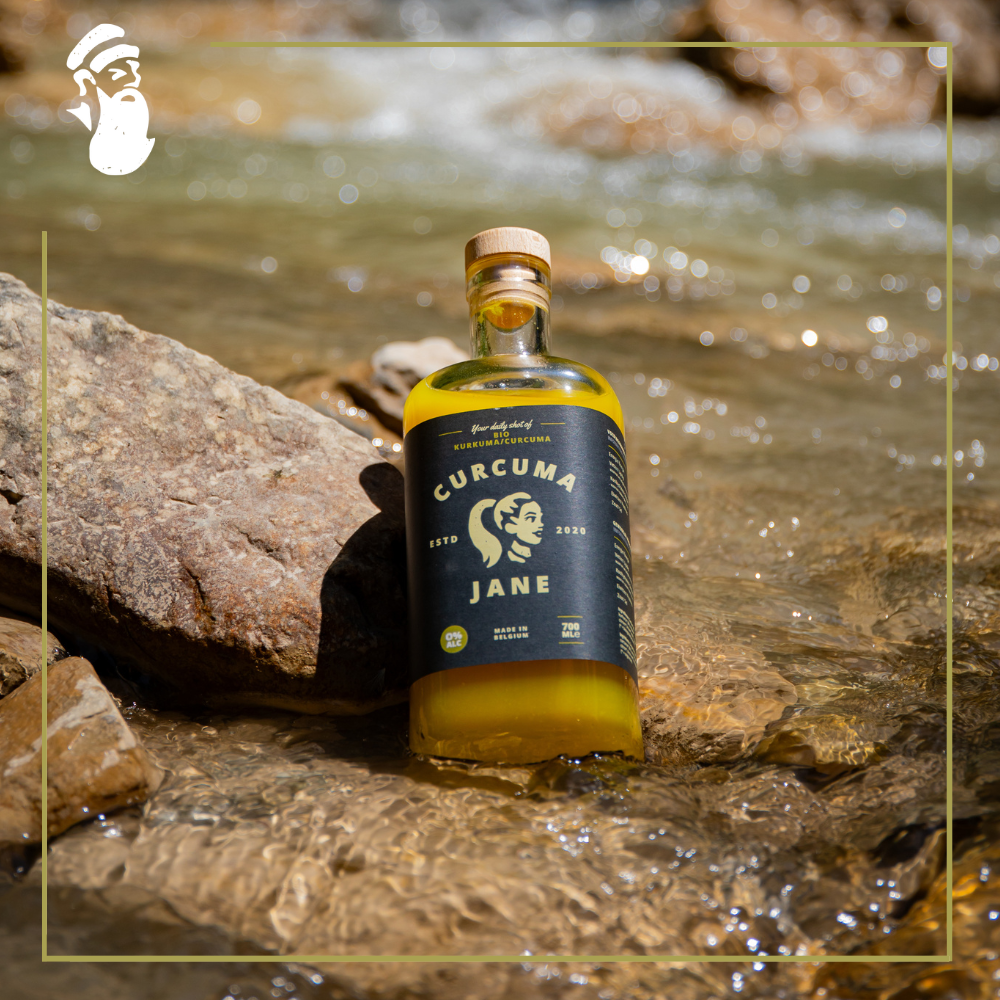 Curcuma Jane is a 100% organic, non-alcoholic ginger and turmeric drink, cold-pressed and bottled in Lier. With no less than 48% fresh organic ginger and yes, on top of that, 8% fresh organic turmeric, complemented with refreshing mint, lime, and lemon, a touch of fairtrade organic cane sugar, and a subtle bouquet of spices. In short: the power and benefits of ginger and turmeric, but delicious!